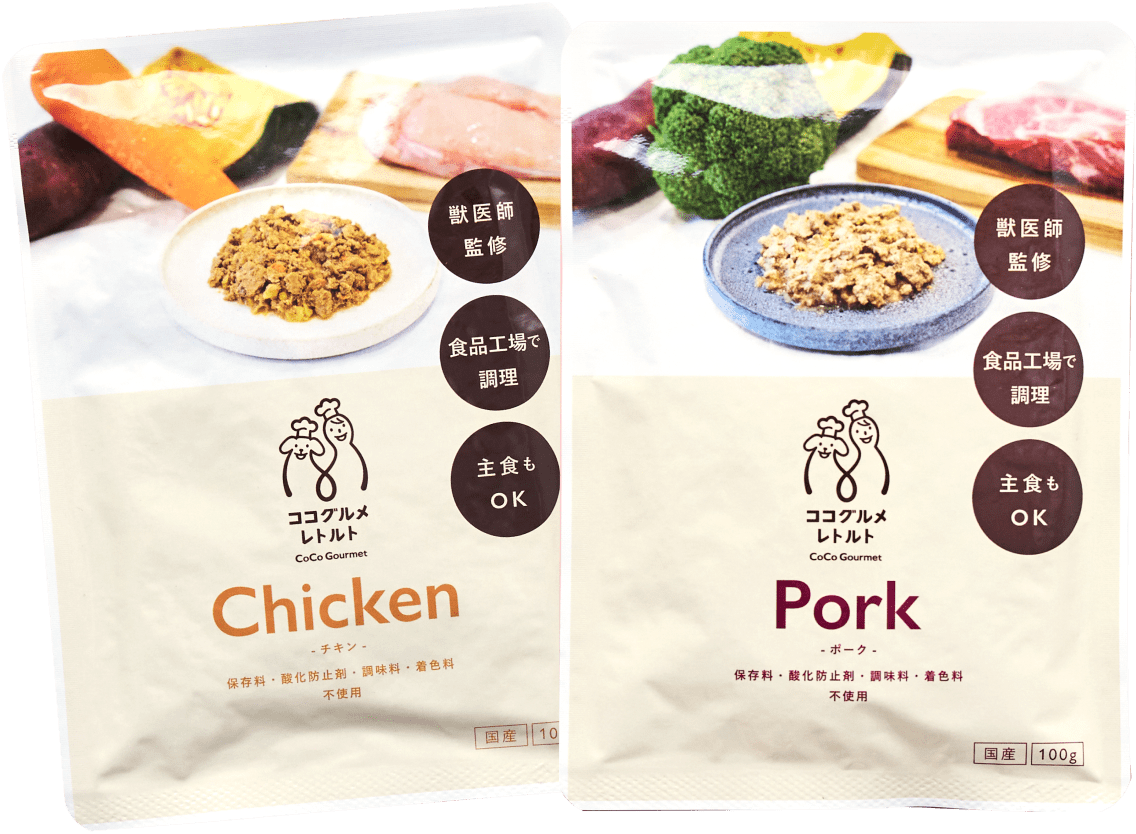 国産豚肉(もも、レバー、ハツ、かた、かたロース)、国産さつまいも、国産ブロッコリー、国産かぼちゃ、ごま(国内製造)、かつお節粉(国内製造)、殺菌乳酸菌(国内製造)、粉末昆布(国内製造)/ミネラル類(Ca、P、Cl、Na、Zn、Cu、Fe、Mn)、ビタミン類(C、ナイアシン、E、パントテン酸、B2、B1、B6、A、葉酸、D、B12)
